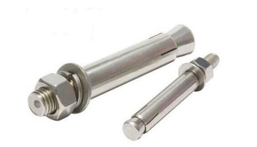 2、安裝平墊、彈墊和螺母,將螺母旋至螺栓和末端以保護(hù)螺紋,再將內(nèi)膨脹螺栓插入孔內(nèi)。